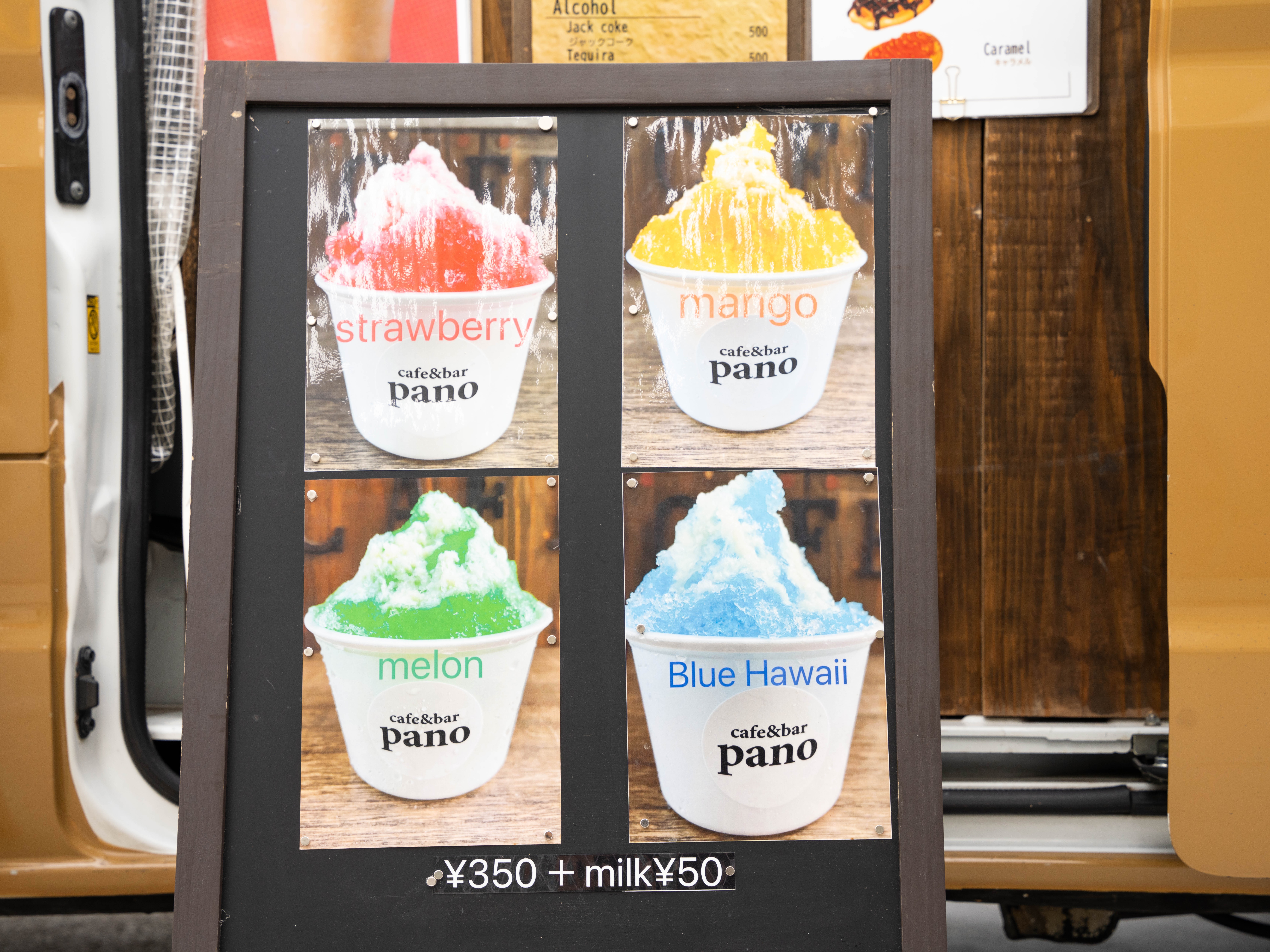 We also offer seasonal products such as shaved ice in the summer, hot drinks in the winter, and original soups made with Kin Agu.