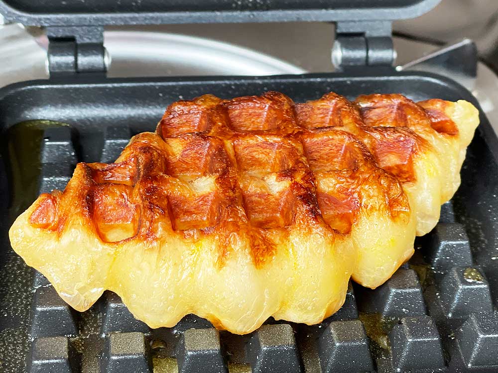クロッフルとは、クロワッサン生地をワッフルメーカーで挟んで焼き上げたスイーツです。