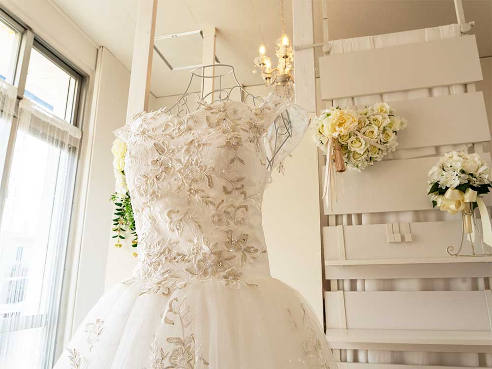 結婚式やイベント、特別な写真撮影などでも利用できるレンタルドレスは、貸出期間もお客様に合わせて柔軟に行っているそうです。