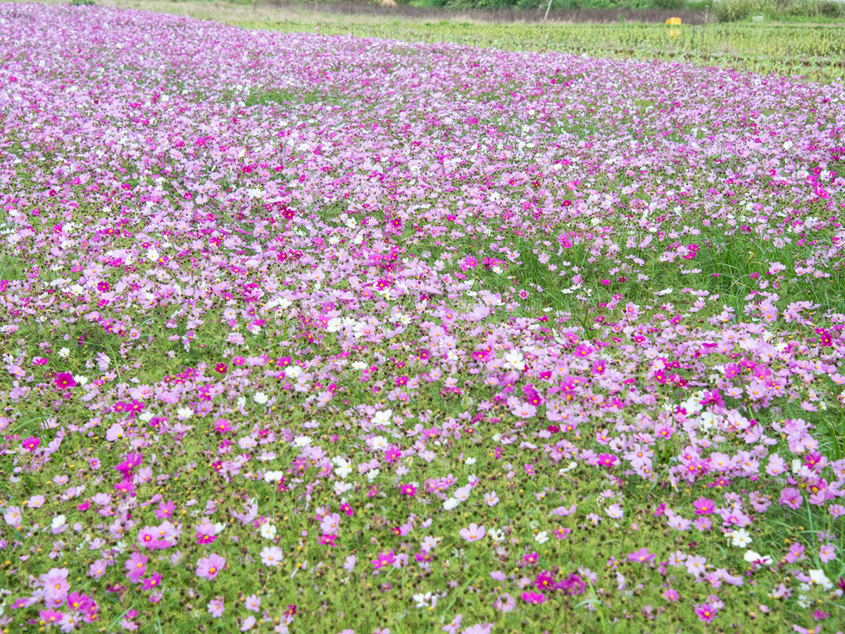 四處綻放的大波斯菊為相當受歡迎的照相景點